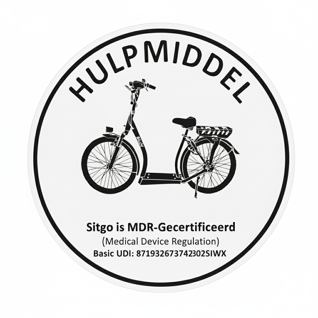 De Sitgo is een tweewielige elektrische aangedreven loophulp en valt in de categorie mobiliteitshulpmiddel met motor. Om de Sitgo op gang te brengen moet er eerst op eigen kracht een zetje worden gegeven voordat de gashendel geactiveerd wordt. De Sitgo is voorzien van certificatie Medical Device Regulations (MDR) 2017/745 dit betekent dat de Sitgo voor de wetgeving in de categorie medische hulpmiddelen valt in vergelijking met een MDR gecertificeerde scootmobiel.